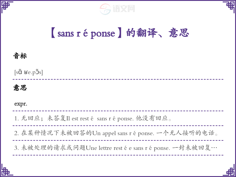 【sans réponse】是什么意思、字义解释