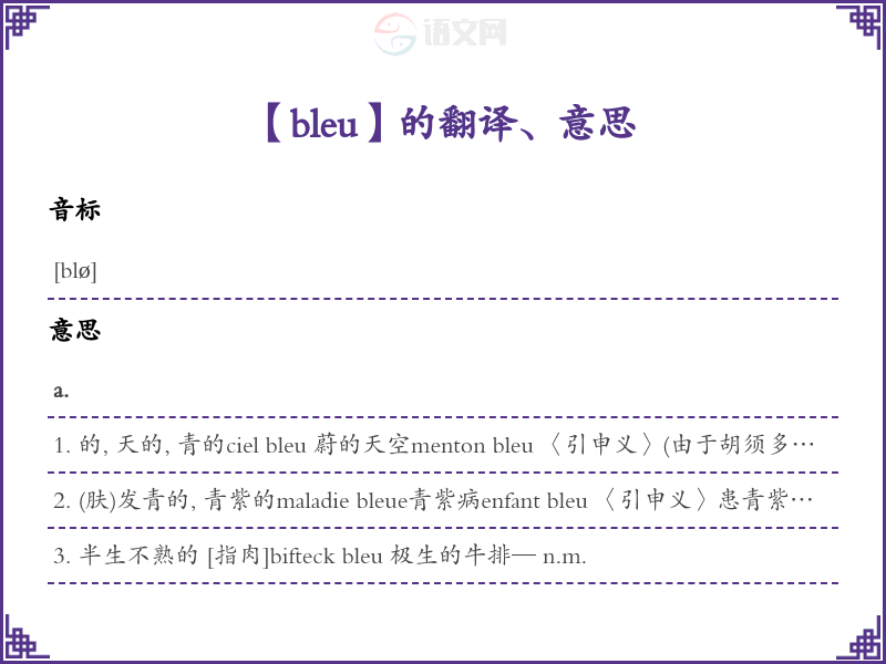 bleu法语的中文翻译、意思
