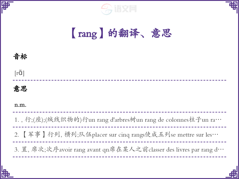 rang法语的中文翻译、意思