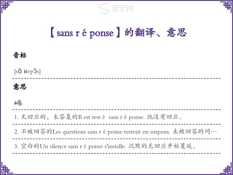 【sans réponse】是什么意思、字义解释
