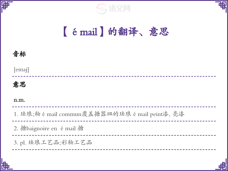 1. 珐琅;釉émail commun覆盖搪器皿的珐琅émail peint漆, 亮漆