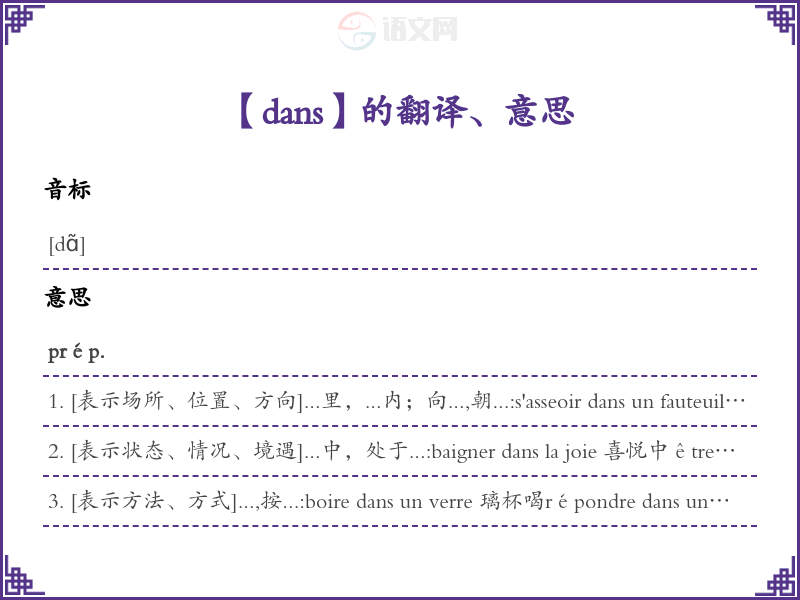 dans法语的中文翻译、意思