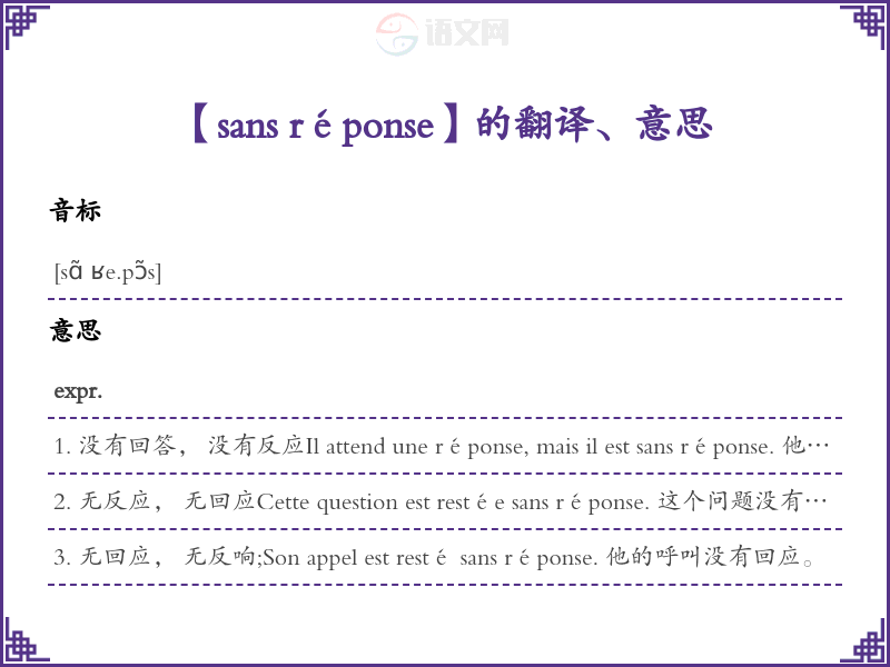 【sans réponse】是什么意思、字义解释