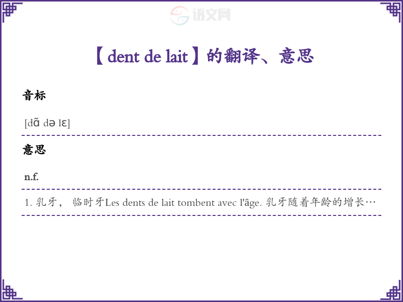 dent de lait法语的中文翻译、意思