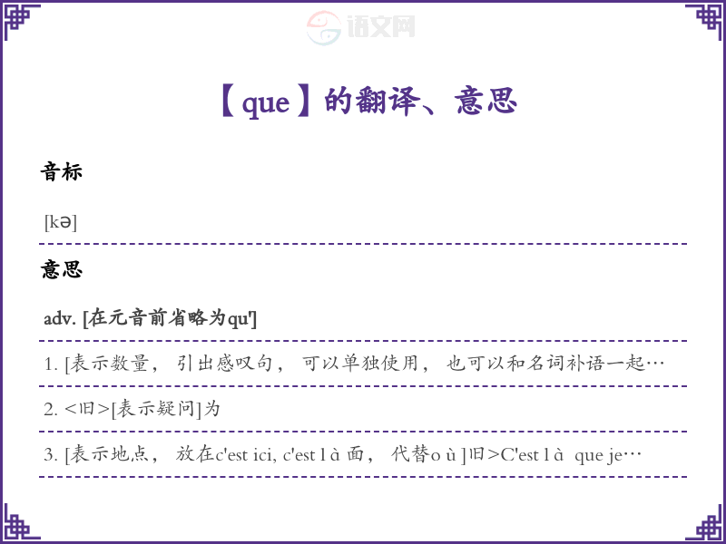 que法语的中文翻译、意思