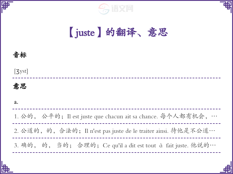 juste法语的中文翻译、意思