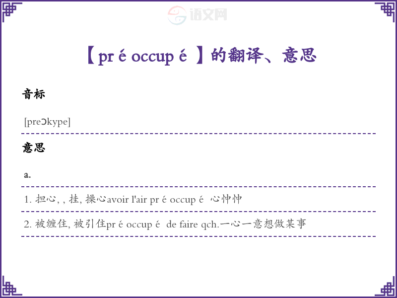 【préoccupé】是什么意思、字义解释