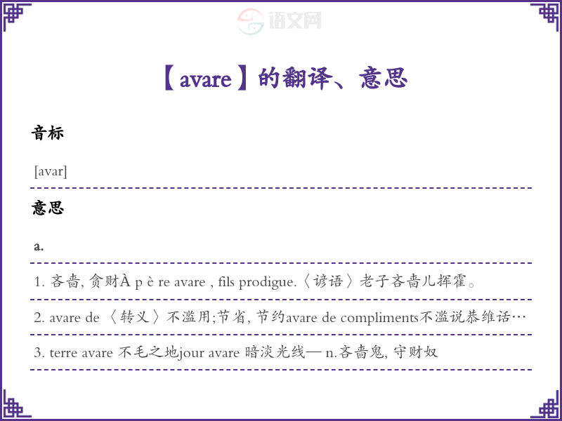 avare法语的中文翻译、意思