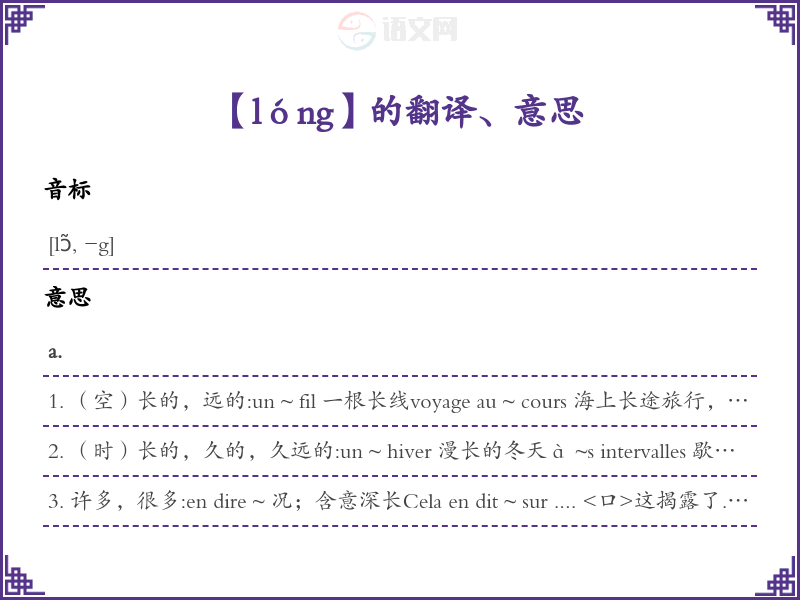 lóng法语的中文翻译、意思