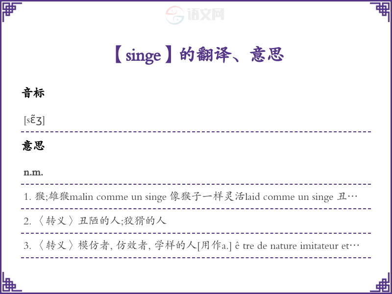 singe法语的中文翻译、意思