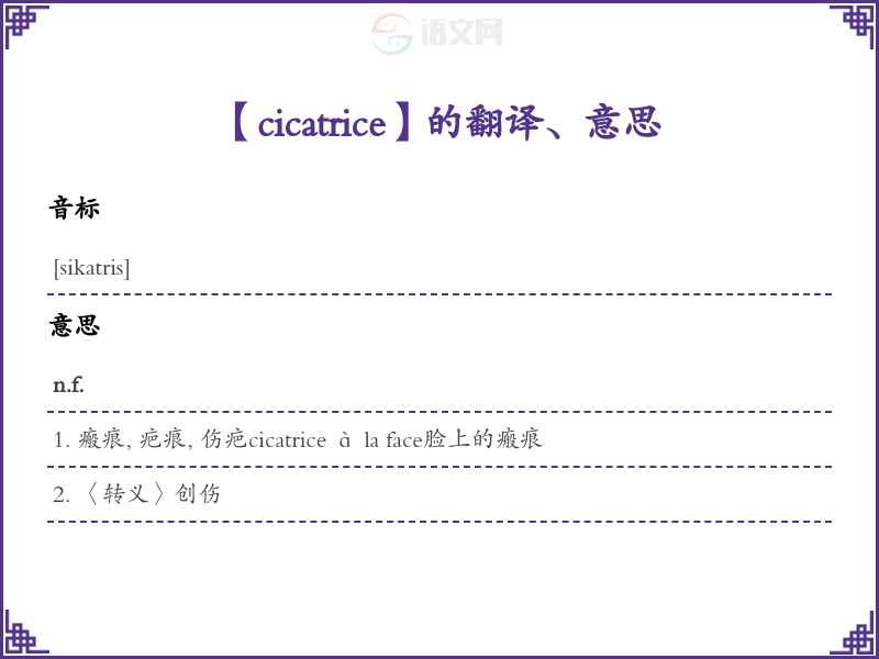 cicatrice法语的中文翻译、意思