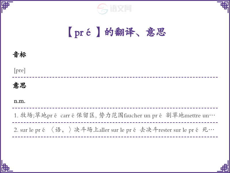pré法语的中文翻译、意思