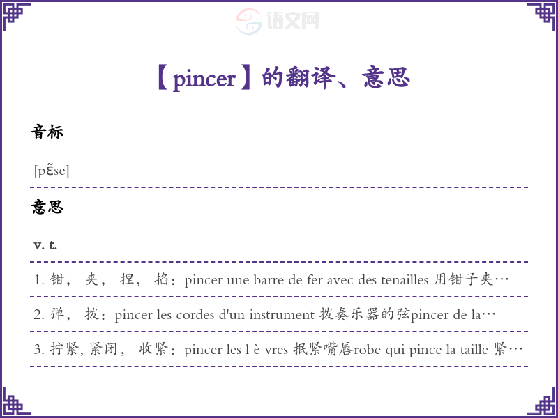 pincer法语的中文翻译、意思