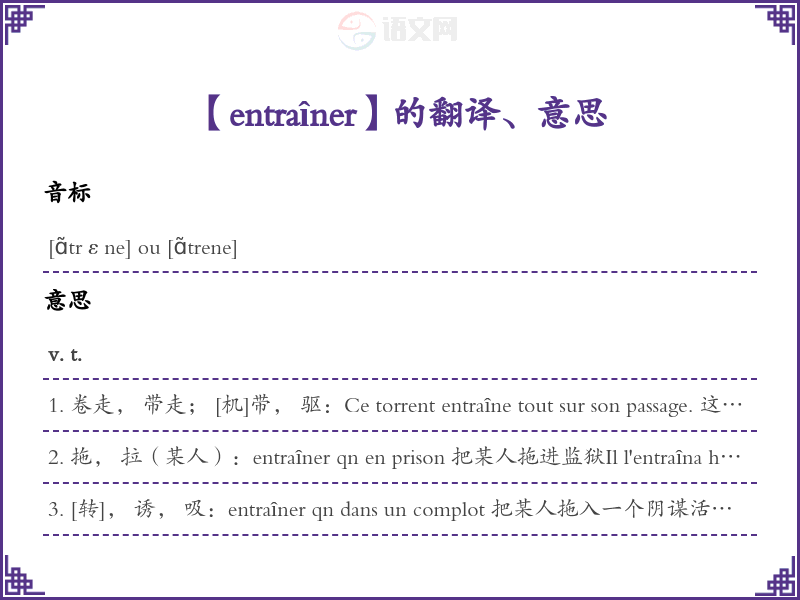 entraîner法语的中文翻译、意思