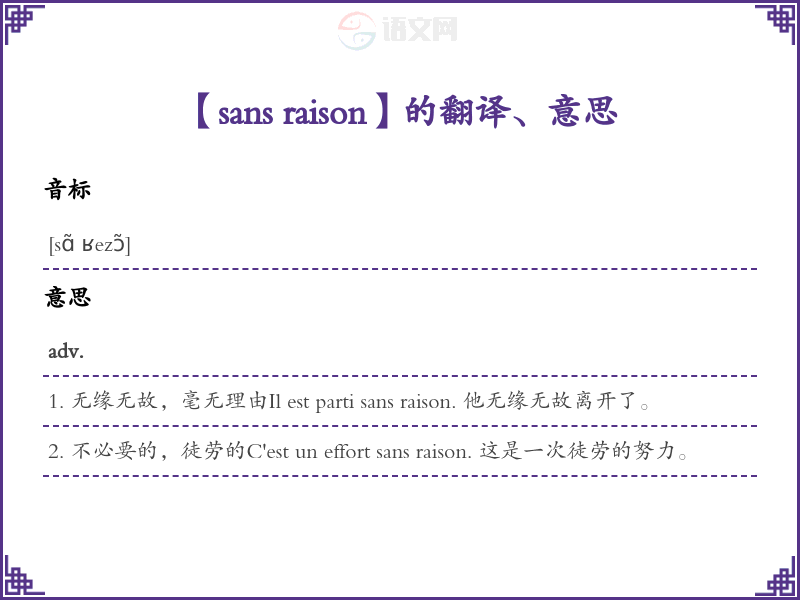 sans raison法语的中文翻译、意思