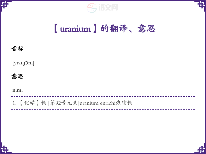 1. 【化学】铀 [第92号元素]uranium enrichi浓缩铀