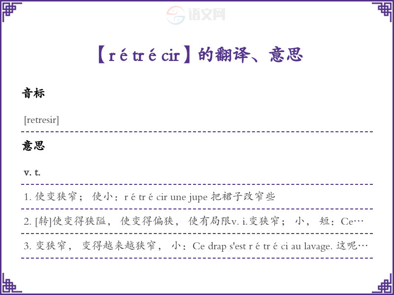 【rétrécir】 助记: 近义词: 反义词: 联想词