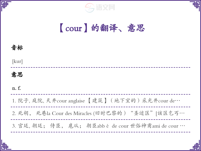cour法语的中文翻译、意思