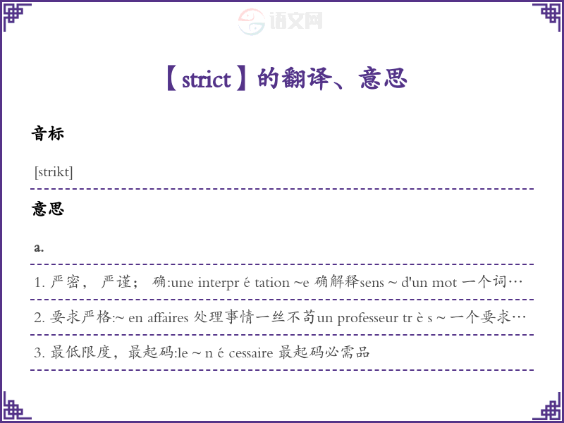 strict法语的中文翻译、意思