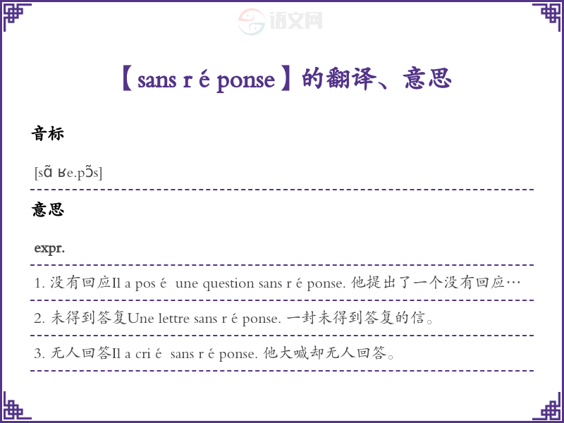【sans réponse】是什么意思、字义解释