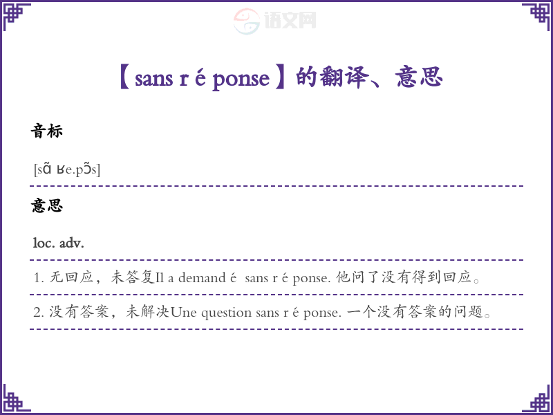 1. 无回应,未答复Il a demandé sans réponse. 他问了没有得到回应。
