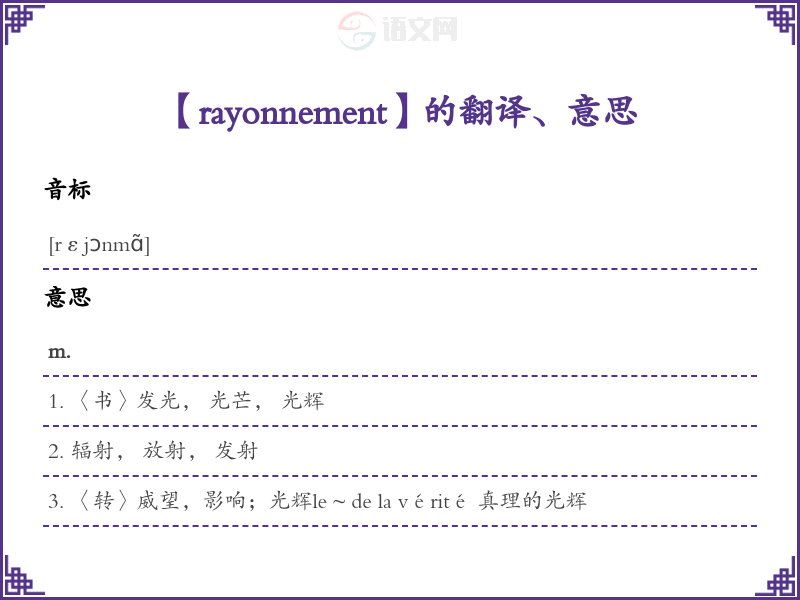 rayonnement法语的中文翻译、意思