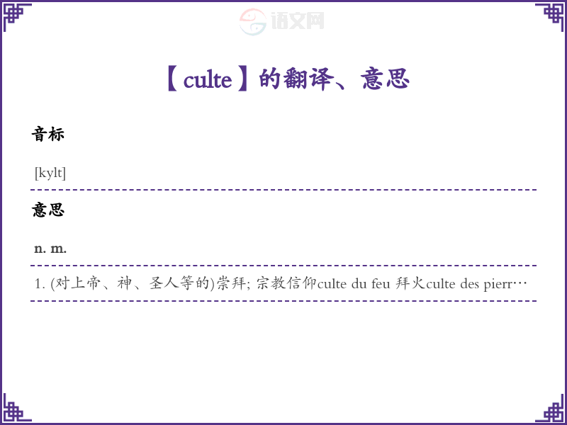 【culte】是什么意思、字义解释