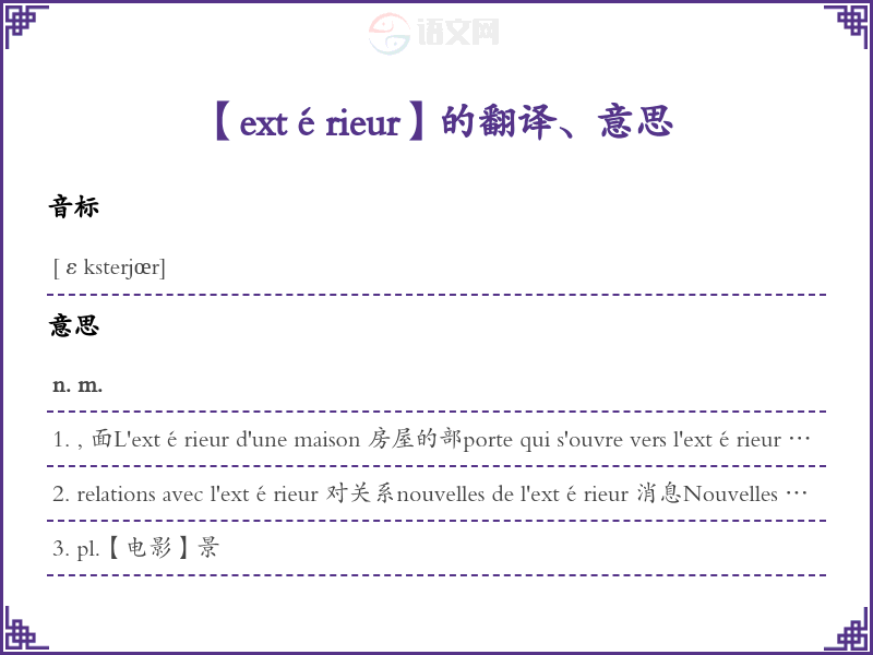 【extérieur】 联想: 近义词: 反义词: 联想词