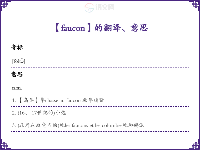 faucon法语的中文翻译、意思