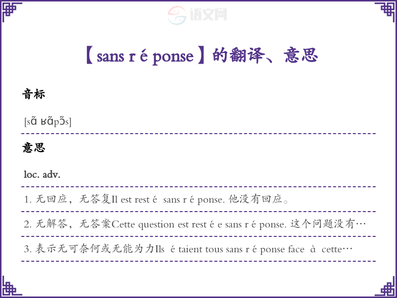 【sans réponse】是什么意思、字义解释