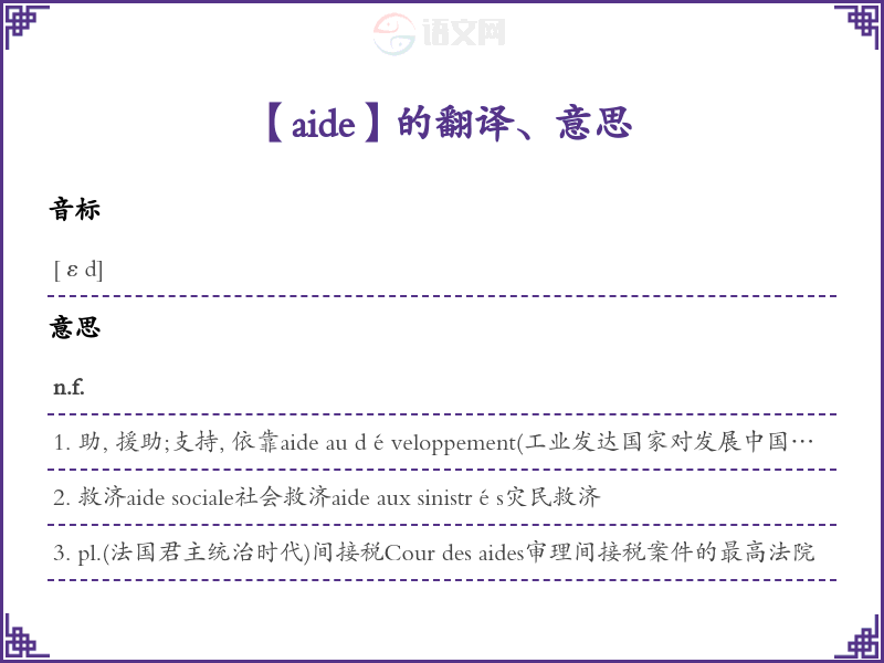 aide法语的中文翻译、意思