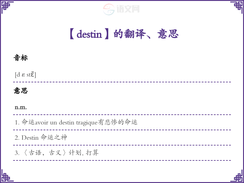 destin法语的中文翻译、意思