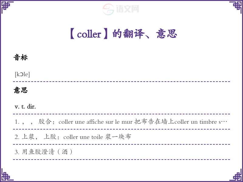 coller法语的中文翻译、意思