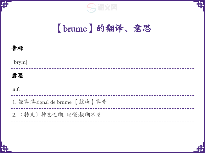 【brume】是什么意思、字义解释