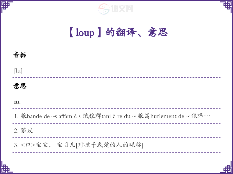 loup法语的中文翻译、意思