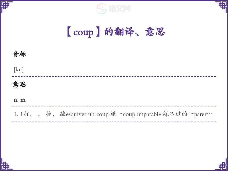 【coup】 词根: 派生: 联想 动词变化: 近义词 反义词 同音、近音词 联想词