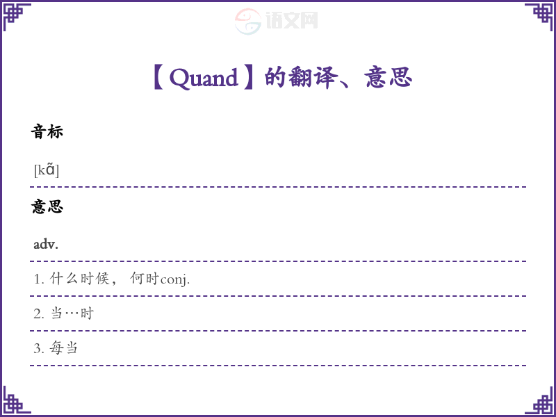 5. [构成感叹句, 主句省略]:Quand je vous le disais!我不跟您说过吗!瞧, 被我说准了吧!Quand je pense qu'elle aura bientôt seize ans!没想她也快 16岁了!6<旧>同时, 与旧>~(bien)même[连词短语]即使[后接condit. ]~mêmeadv. [短语]