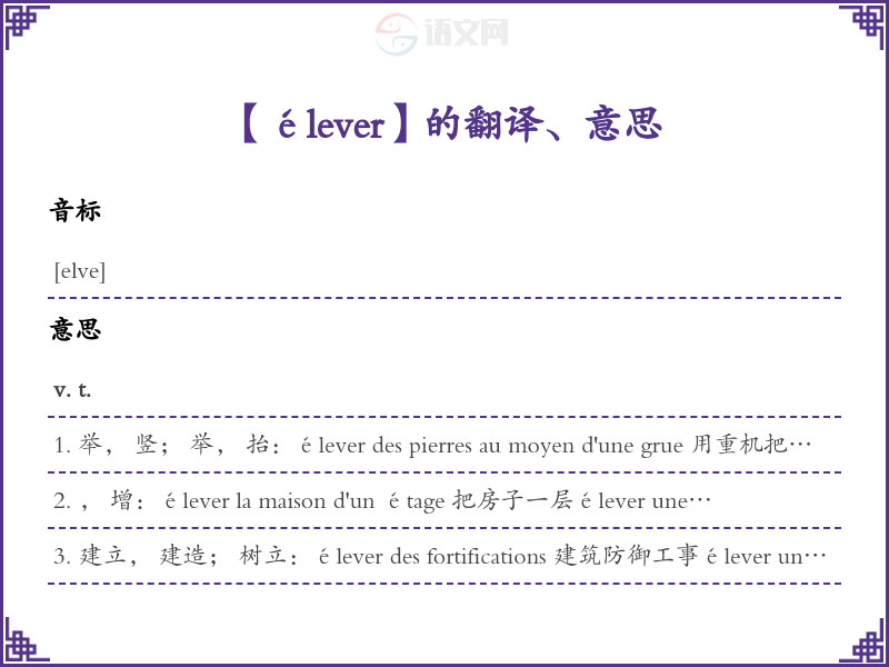 élever法语的中文翻译、意思