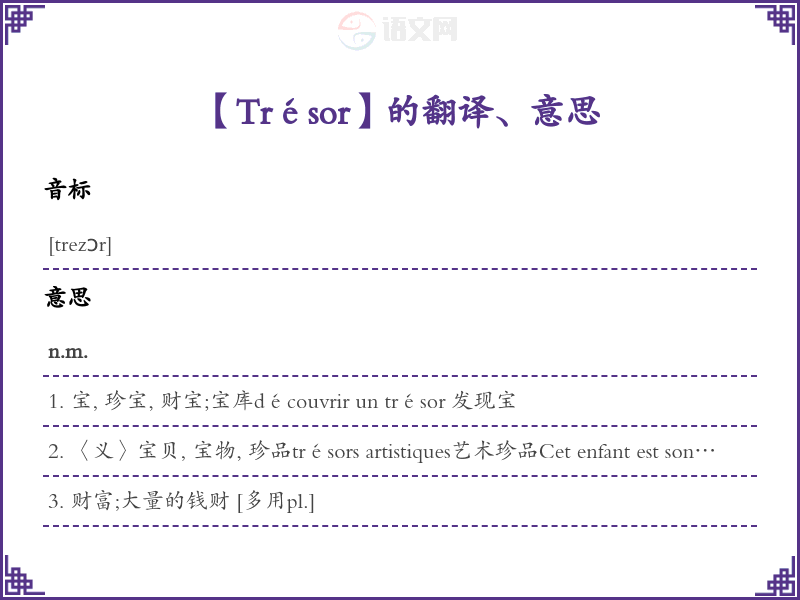 Trésor法语的中文翻译、意思