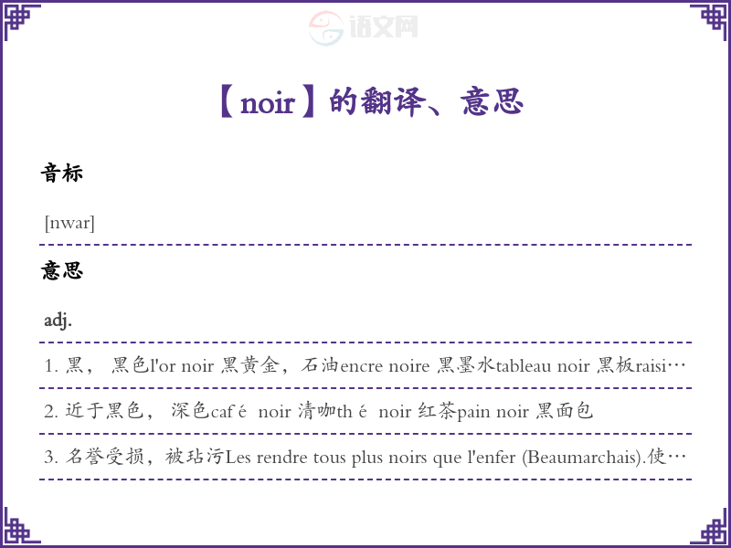 【noir】 联想: 名词变化: 动词变化: 形容词变化: 副词变化: 近义词: 反义词: 联想词