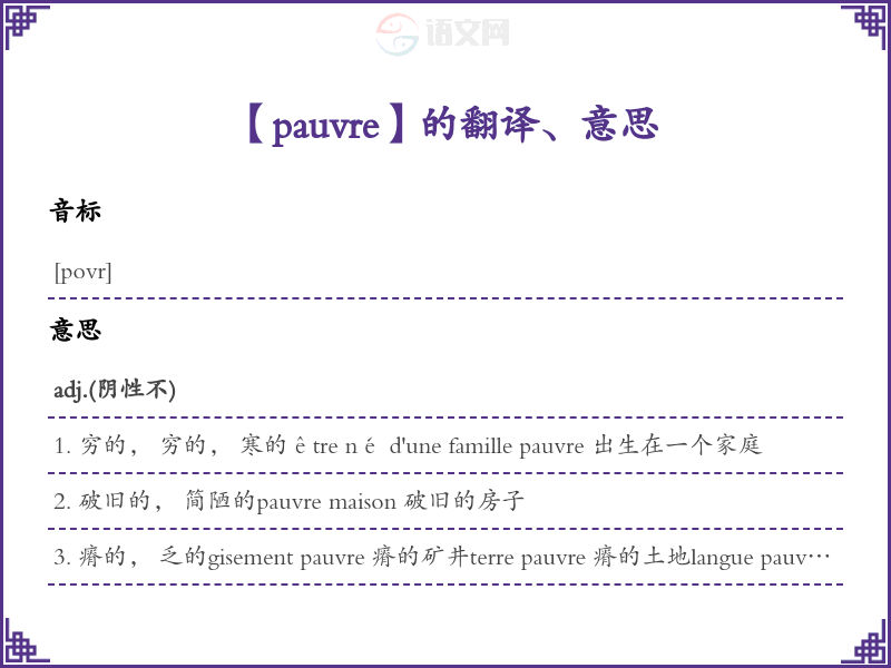 【pauvre】 联想: 词化: 副词化: 近义词: 反义词: 联想词