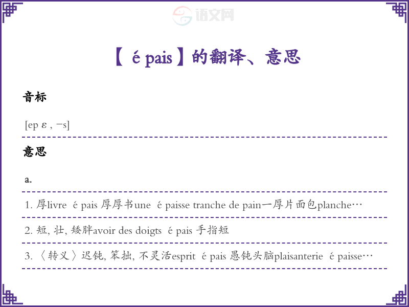 épais法语的中文翻译、意思