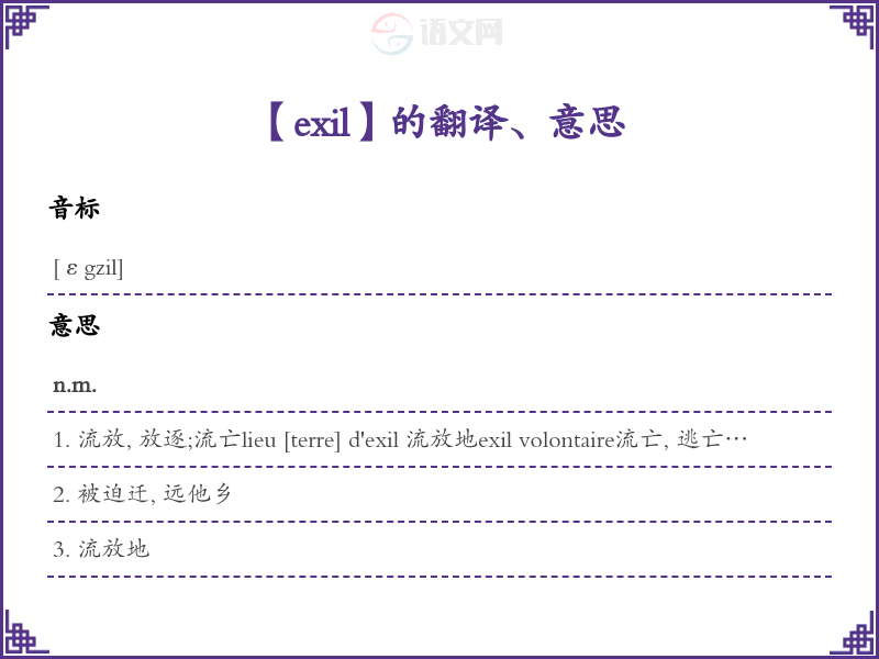 【exil】 联想: 近义词: 反义词: 联想词