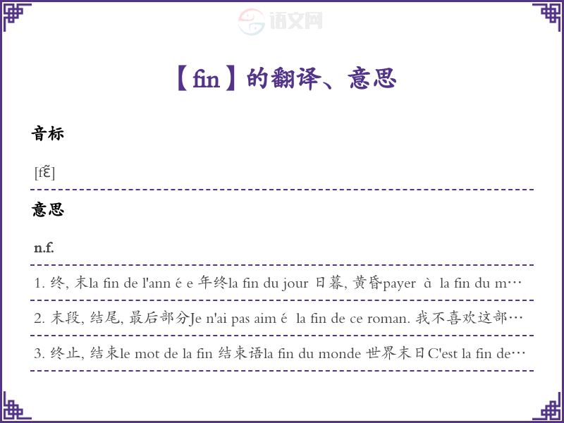 fin法语的中文翻译、意思