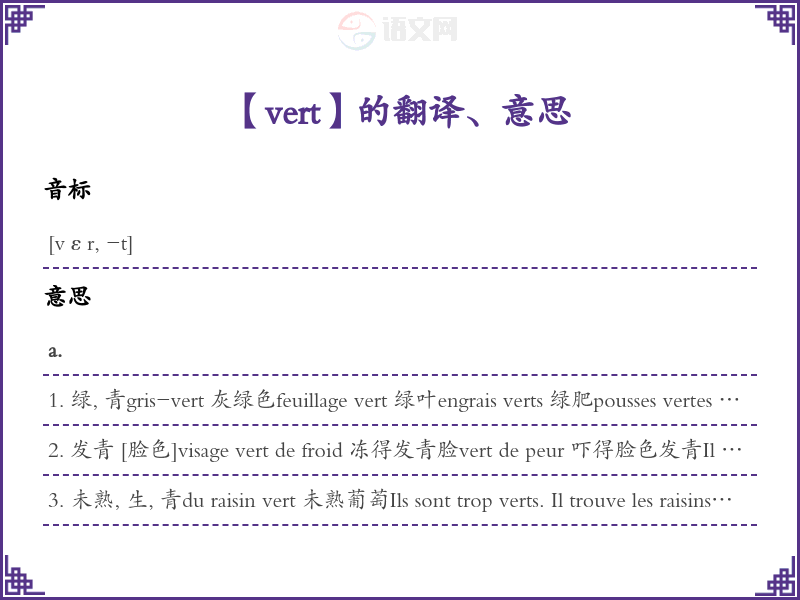 vert法语的中文翻译、意思