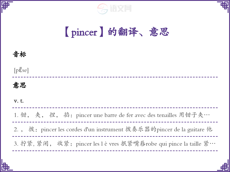 pincer法语的中文翻译、意思