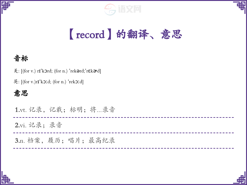 通过以上分析与学方法,可以帮助学者更好地理解和使用“record”这个单词。