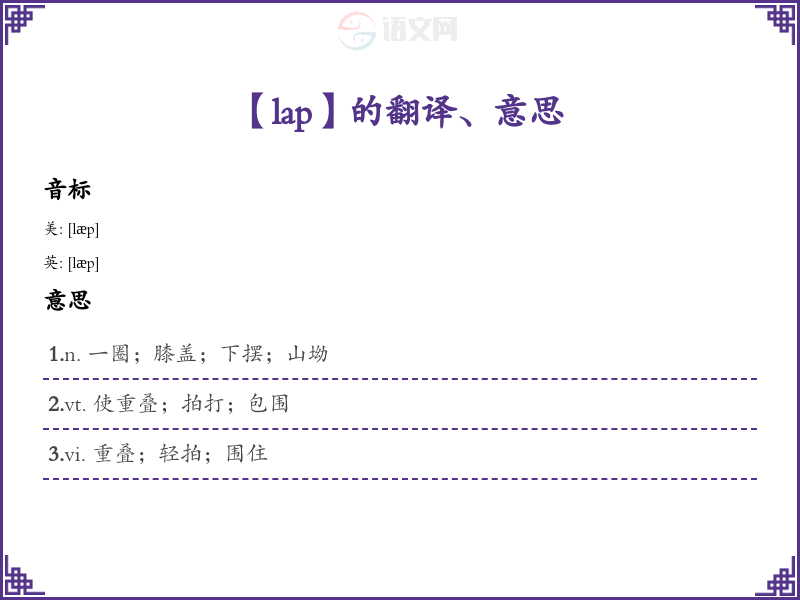 以上是对单词“lap”的详细分析与学*方法,希望能够帮助理解与记忆。