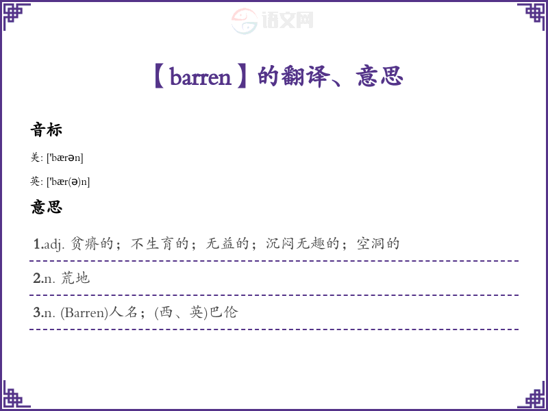 【barren】是什么意思、字义解释