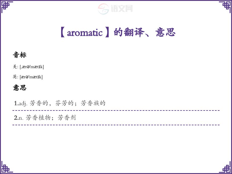 通过以上内容的学*与分析,可以更全面地理解“aromatic”一词的含义和用法。